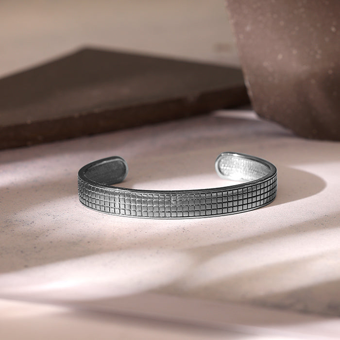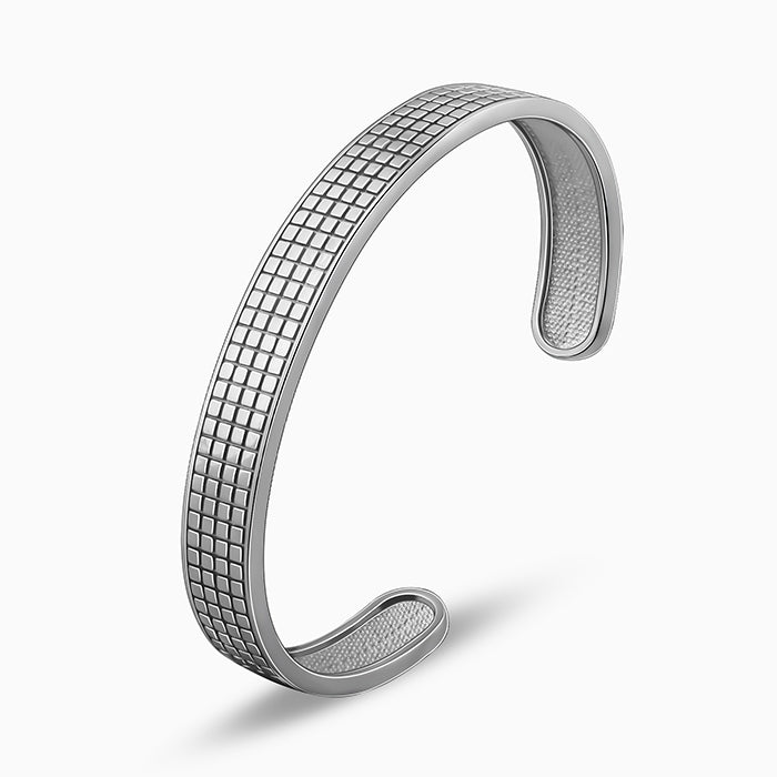 This men's black rhodium cuff bracelet/ adjustable kada features a box pattern.