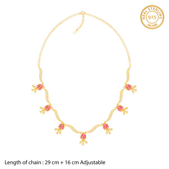 This golden necklace has a Brahma Kamal-inspired motif studded with zircons and enamel. Celebrate the beauty of nature's rarest blooms with GIVA and Bhumi Pednekar - The Bhumi Collection.