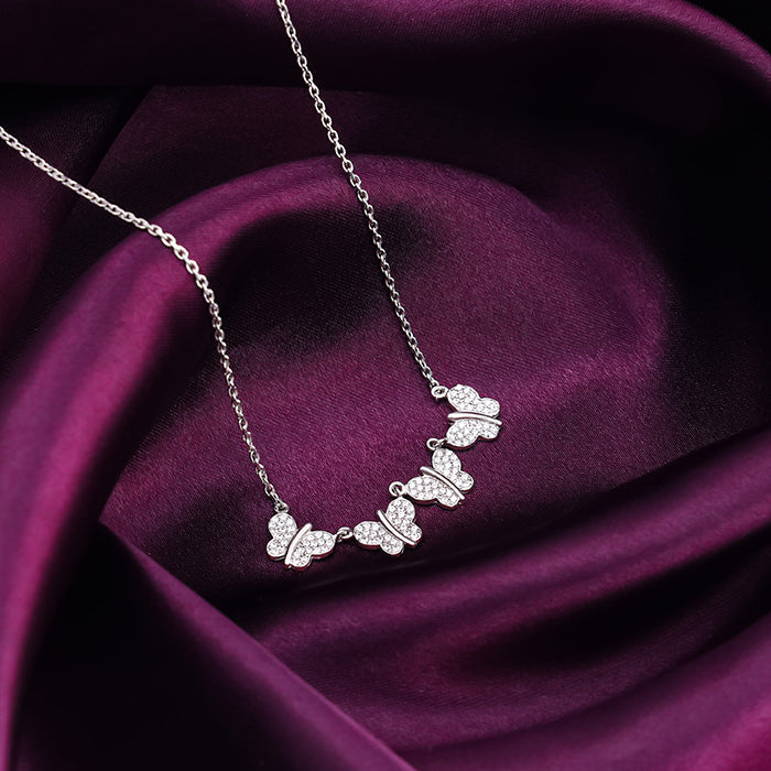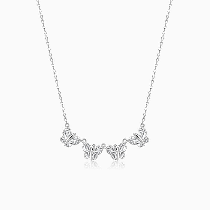 This silver necklace has four beautiful butterflies studded with zircons.
