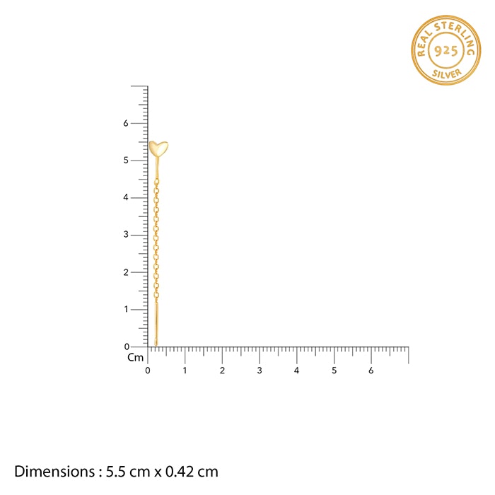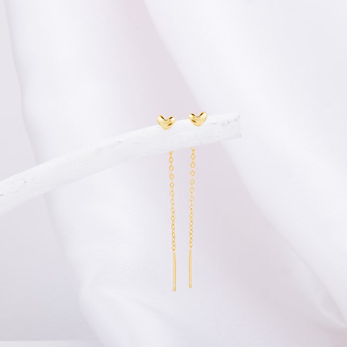 These golden earrings have a dangler design in a chain with a cute heart motif.
