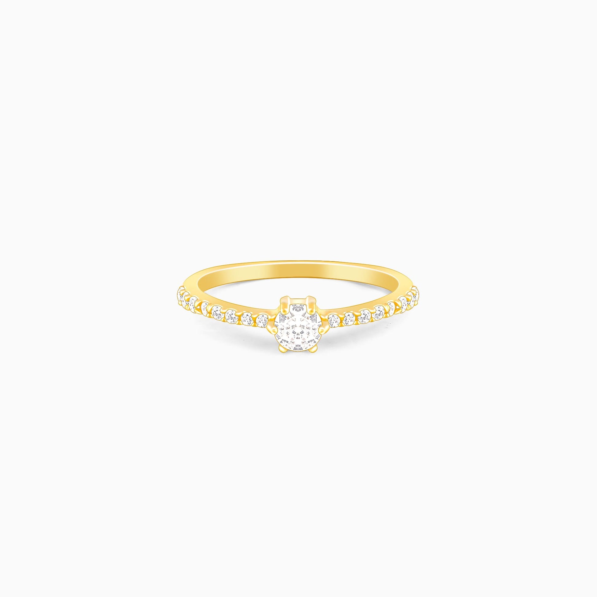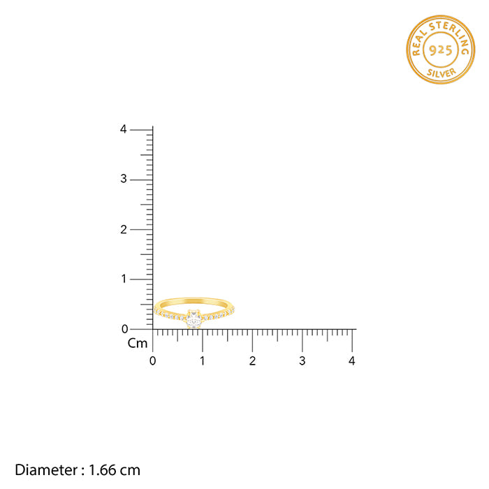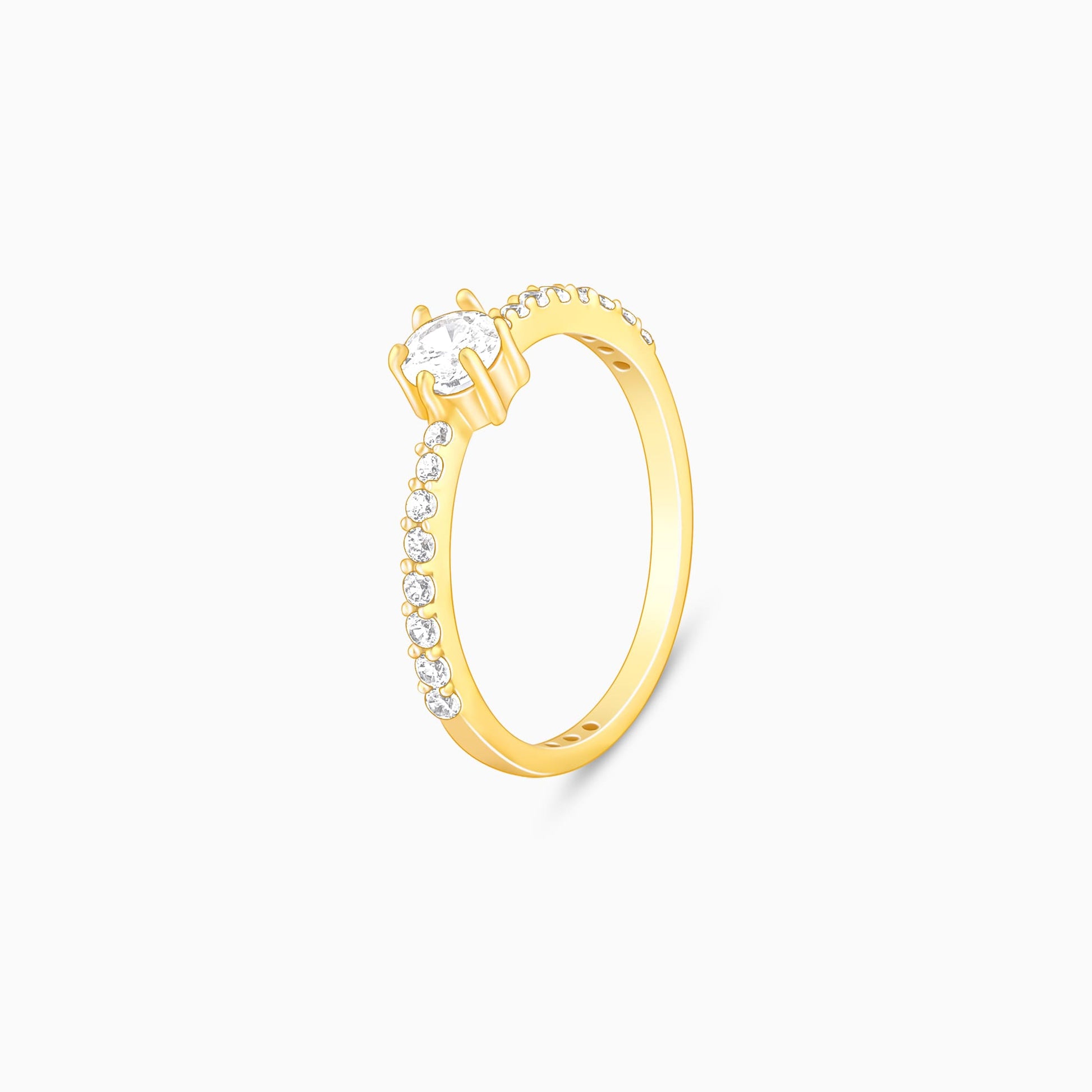 This golden ring has a large zircon placed at the centre, with additional zircons studded in the band.