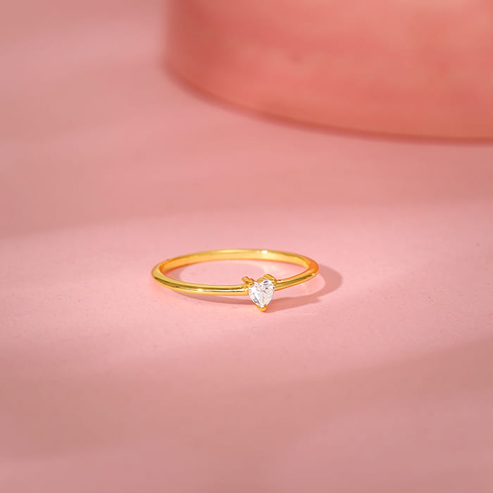 This golden ring features a heart motif with a zircon at the centre.