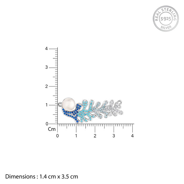 The silver pendant features colourful zirconia stores from darker to lighter colours, and a pearl arranged atop this horizontal ombre zircon arrangement.