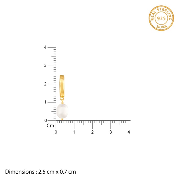 These dangling pearl earrings have a golden hoop with a graceful pearl attached at the bottom.