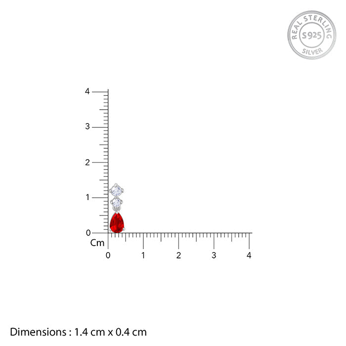 These silver earrings feature two circular zircons with a red stone studded peardrop motif dangling below them. Celebrate your moments of passion with GIVA’s Red Romance Collection.