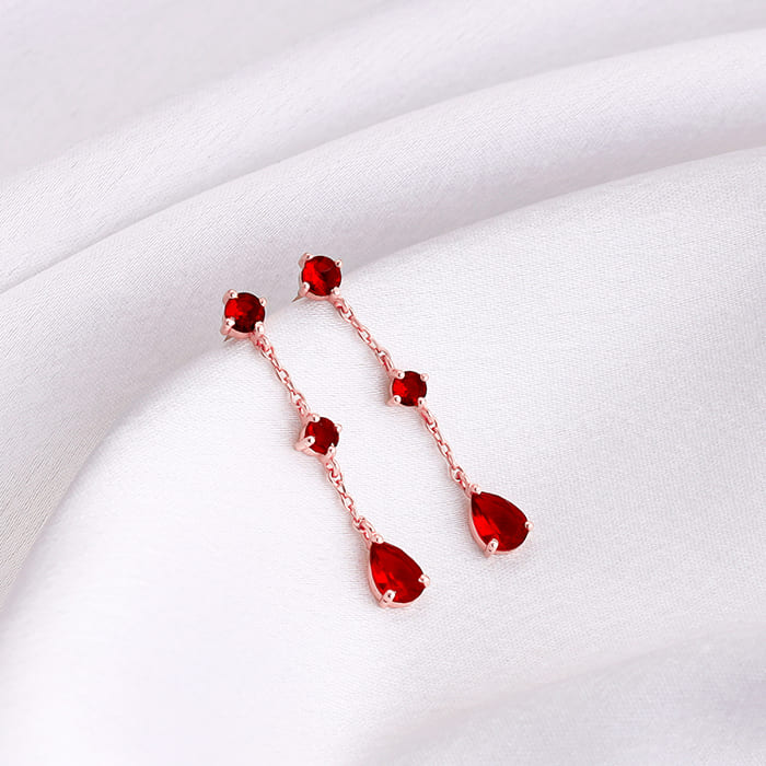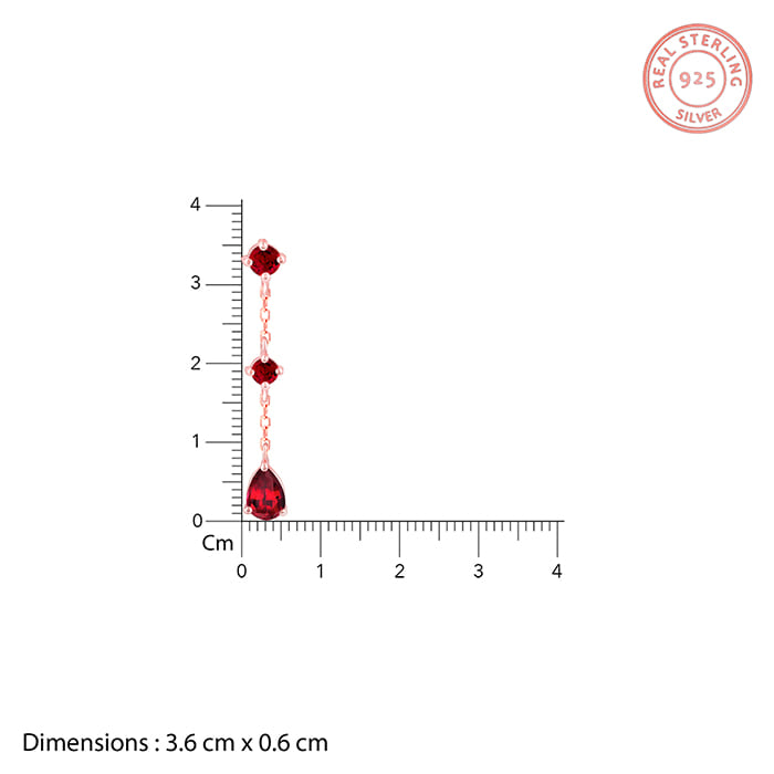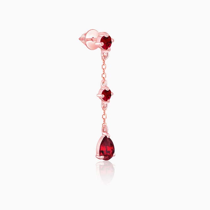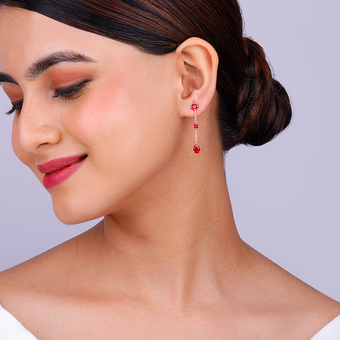 These rose gold earrings feature a string design with dangling circular and teardrop red stones. Celebrate your moments of passion with GIVA’s Red Romance Collection.