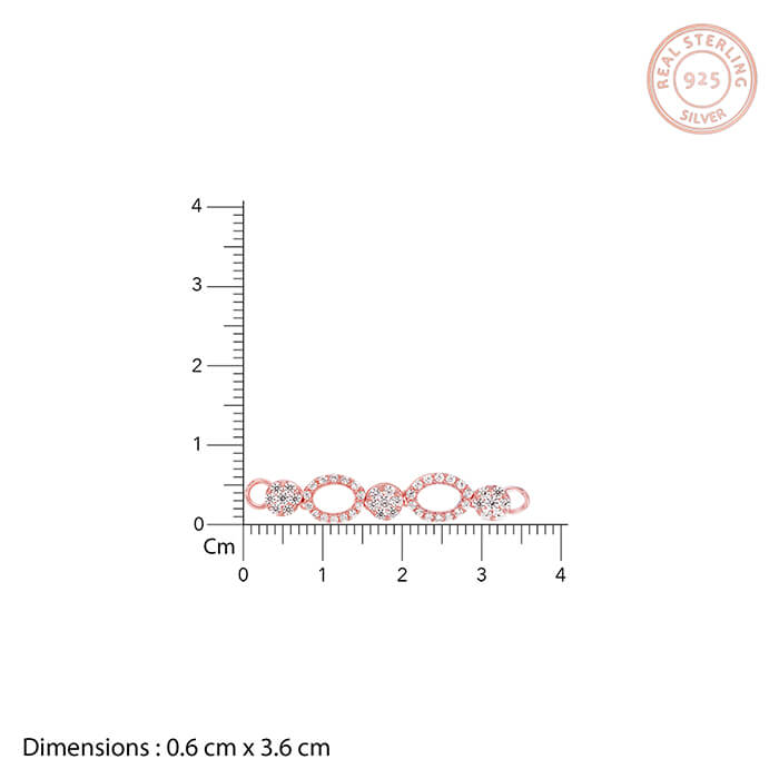 The rose gold necklace has a beautiful centrepiece with oval shaped designs that are studded with zircons.