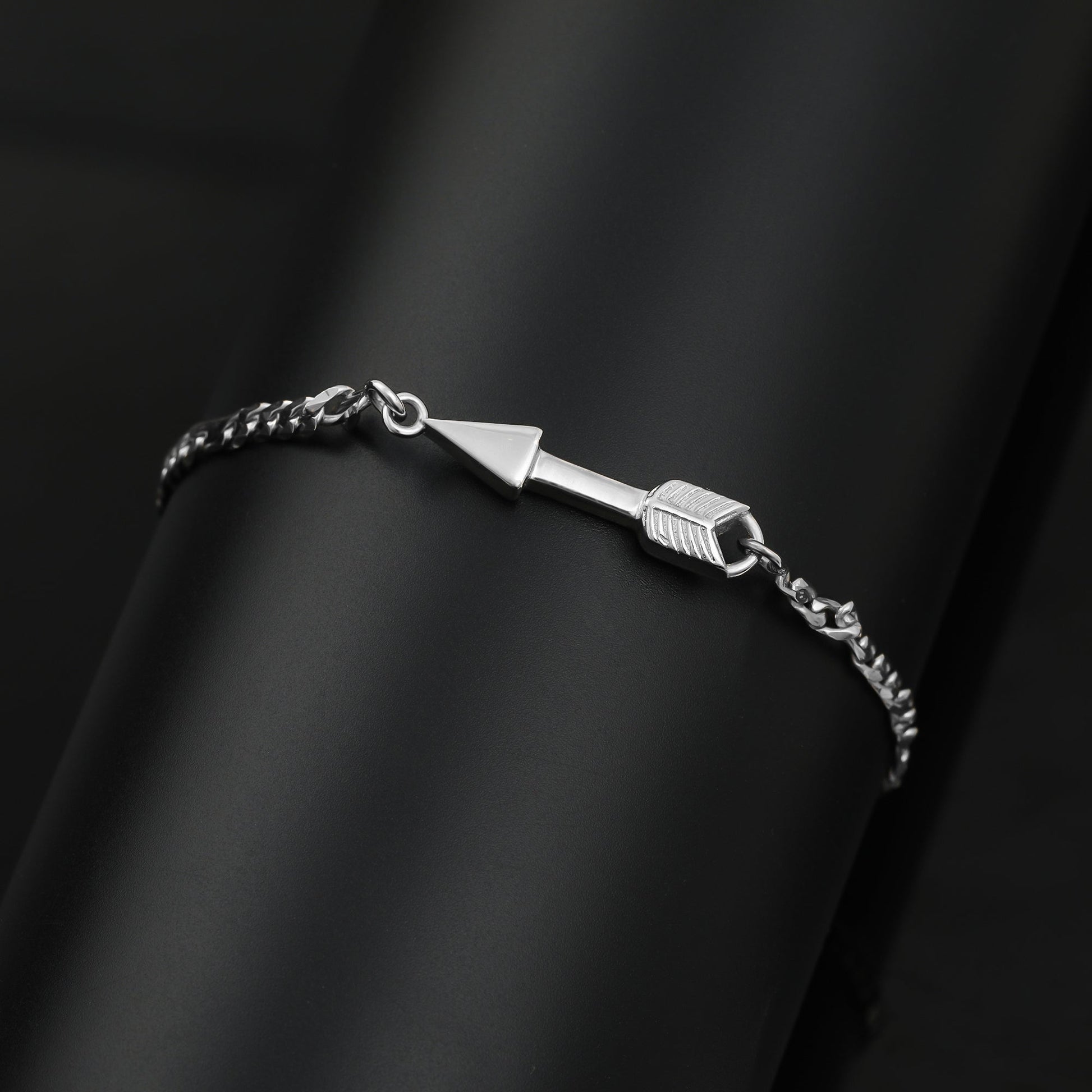 This Silver Arrow Bracelet is handcrafted with love, just for YOU. The simple arrow as a centre piece holds the bold chains together and makes it the ultimate jewellery piece.