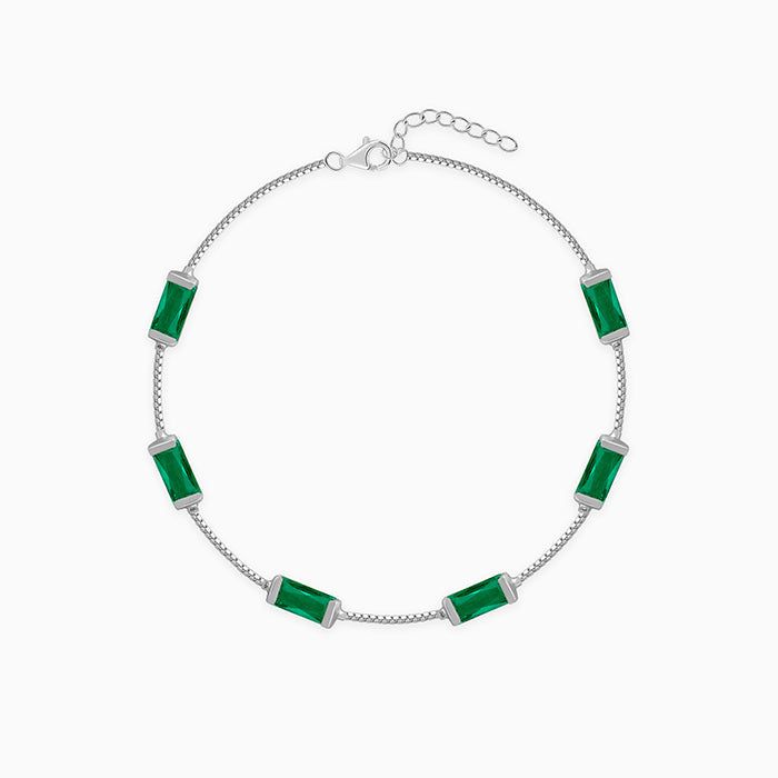 This silver bracelet for women features a baguette-cut coloured stone set in a complete band.