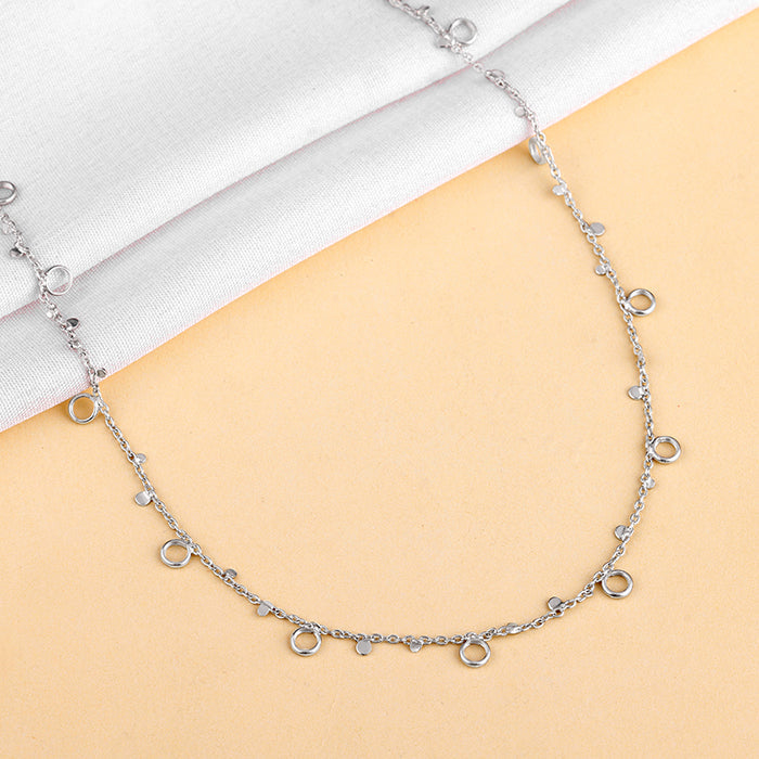 This silver necklace for women features alternating tiny disc charms. It also includes open-circle loops for a playful, modern look.