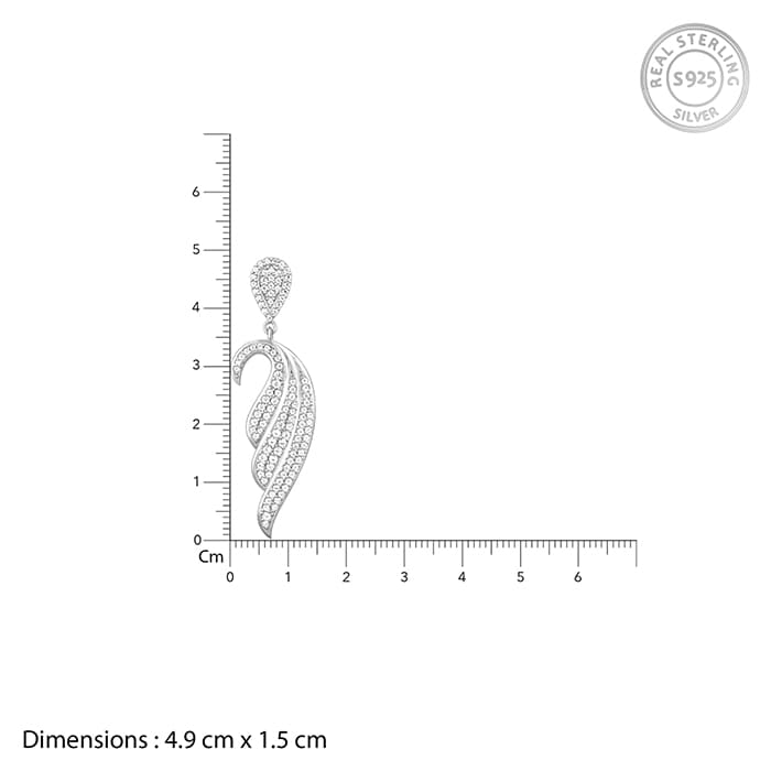 These silver earrings have a beautiful wing design studded with zircons, giving a fiery and elegant look to the earrings.