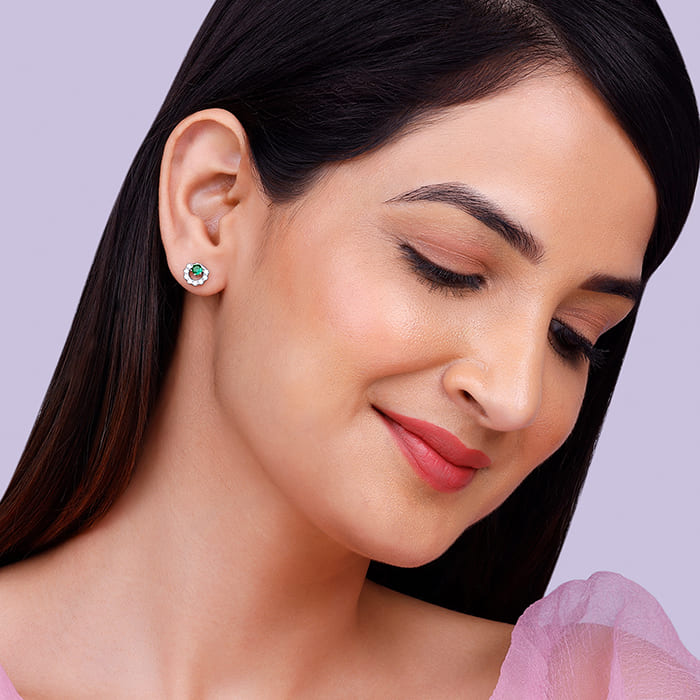 DIVA, YOU are elegance personified. Everything YOU wear, YOU carry with grace. Inspired by our urge to create the perfect match for YOU, these Silver Emerald Green Halo Studs are just as chic as YOU are!