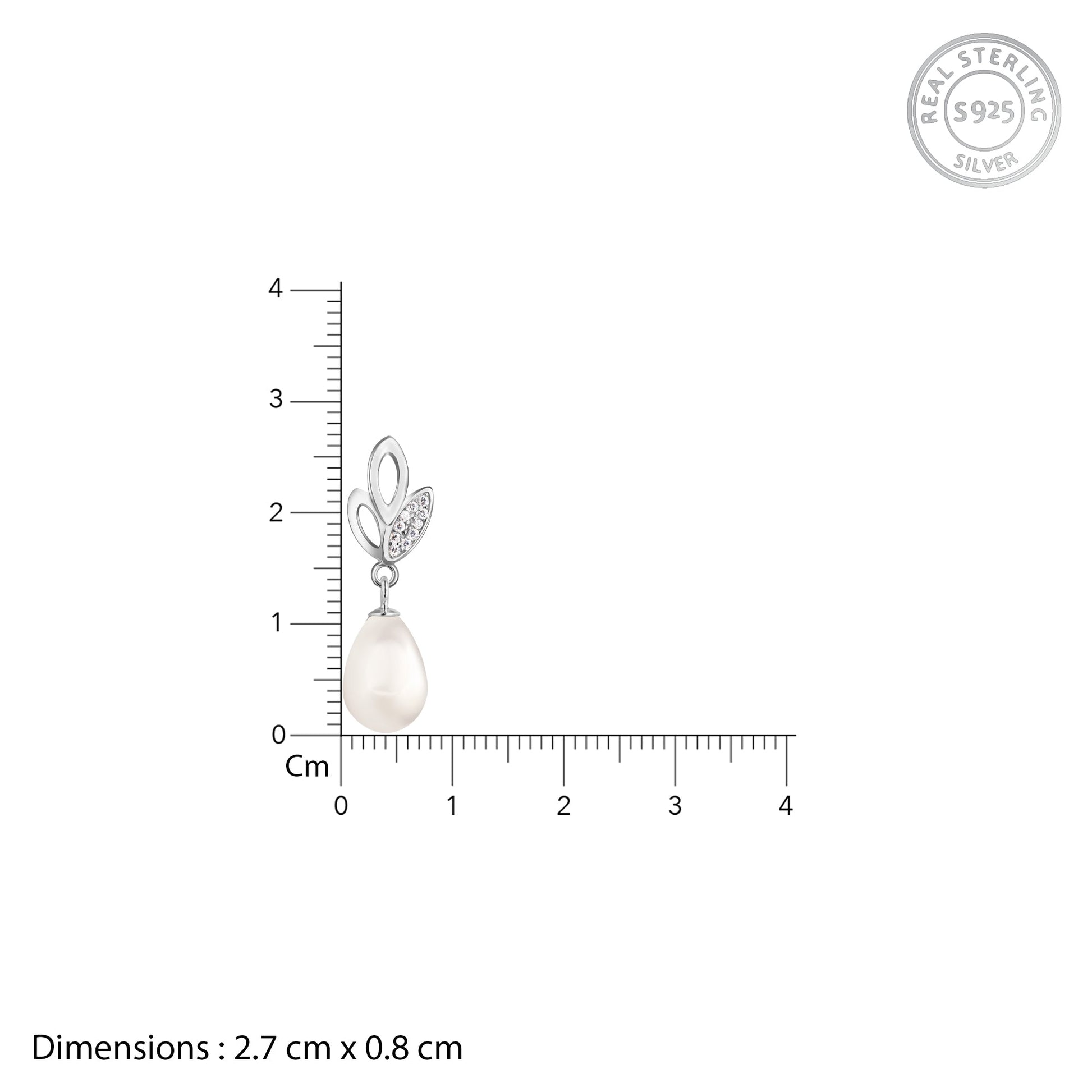 The Silver pendant has a leafy design with a beautiful dangling pearl.