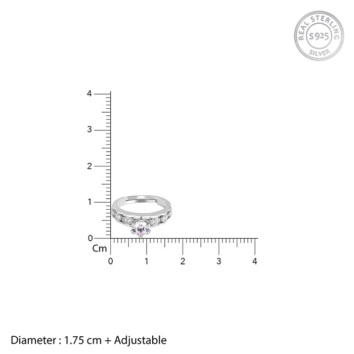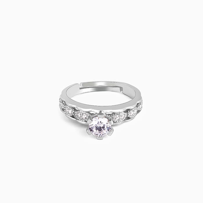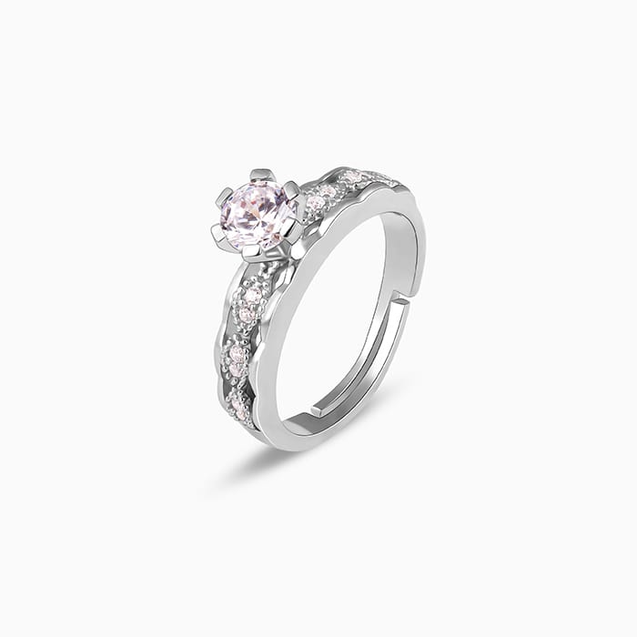 The Silver ring has a zircon as the centre piece on a zircon-studded silver band.