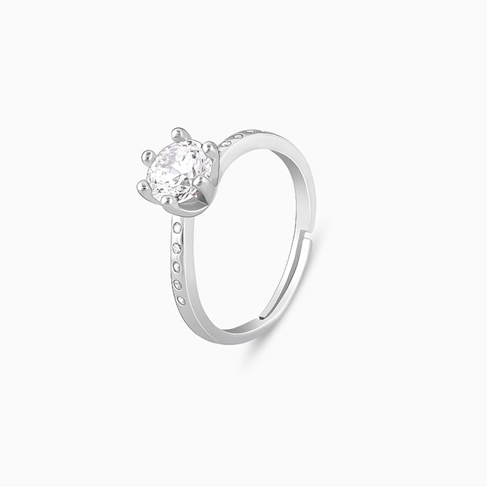 This silver ring has a large zircon placed at the centre, with additional zircons studded in the band.