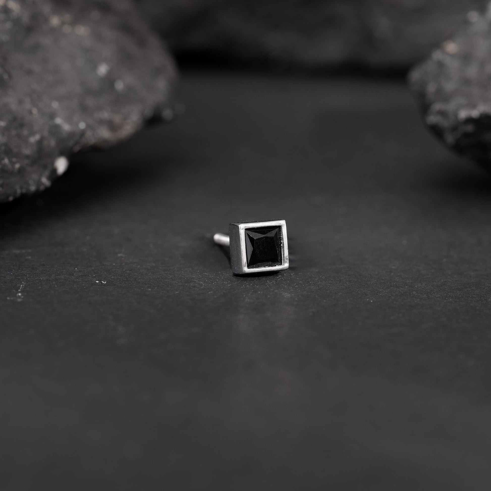 Power, precision, and personality come together in this stud. It’s made to complement the man who’s always one step ahead. This silver stud for men features a square-cut onyx bezel setting.