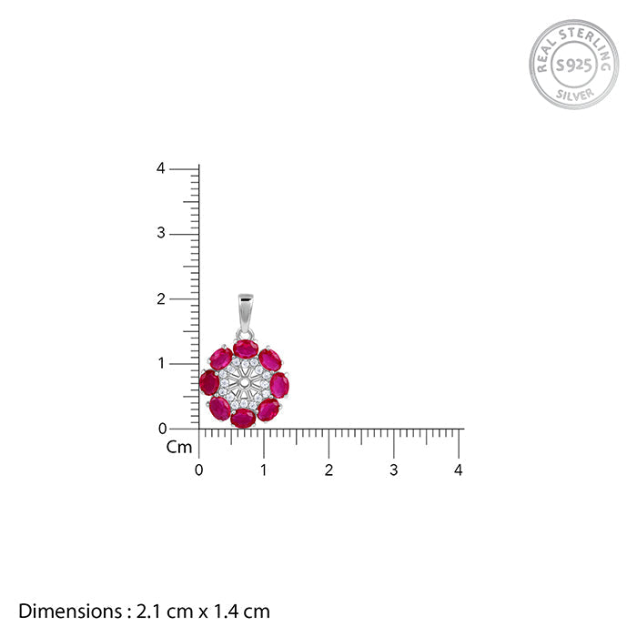 This silver pendant with a link chain for women features a beautiful flower motif. The design is brought to life with coloured stones encircling shimmering zircons.