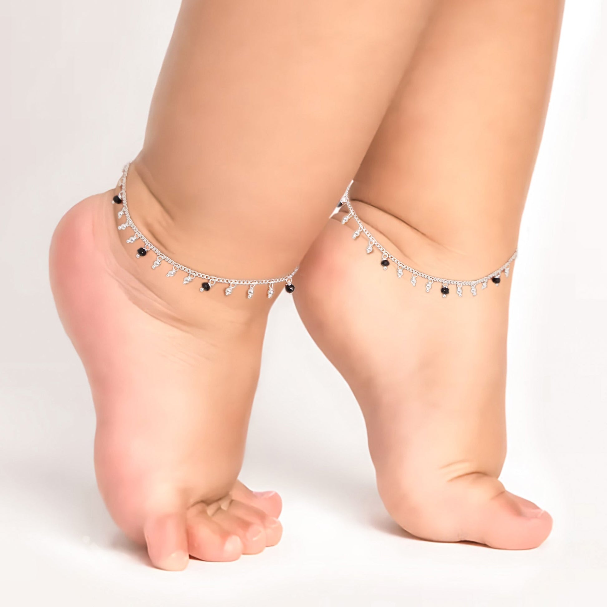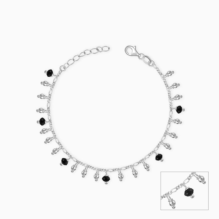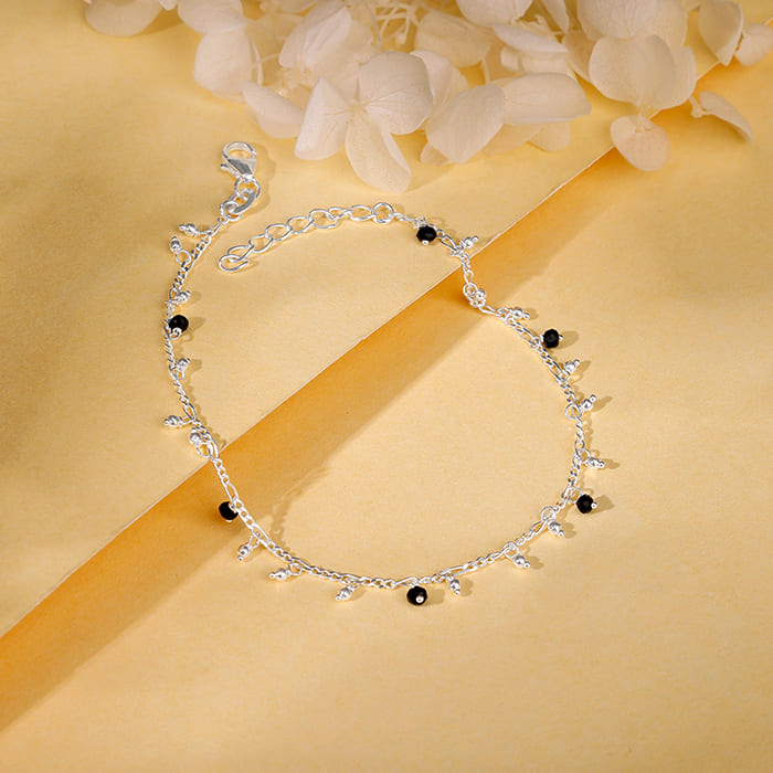 This pure silver anklet features black beads and silver balls strung together in an alternating fashion. A perfect gift for any child.