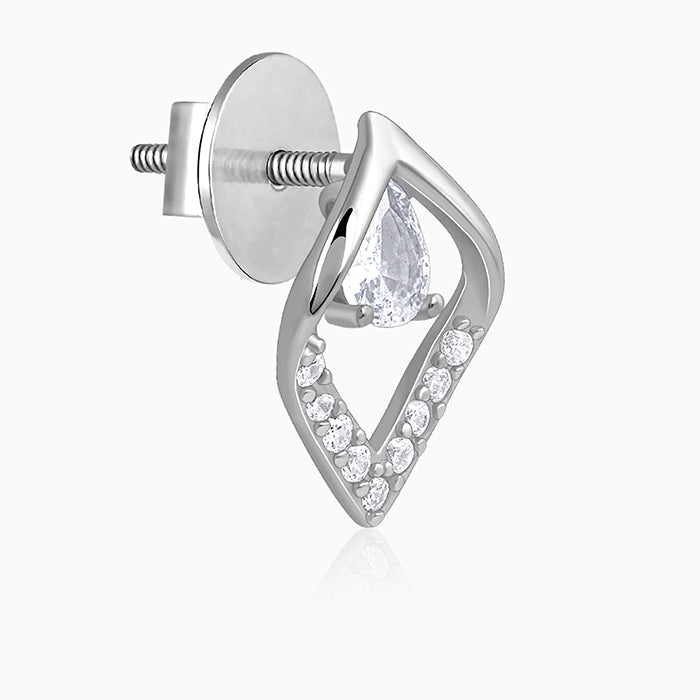 These silver earrings for women feature a graceful leaf shape, with the lower part set with zircons. A shimmering teardrop zircon sits at its centre, adding a touch of sparkle.