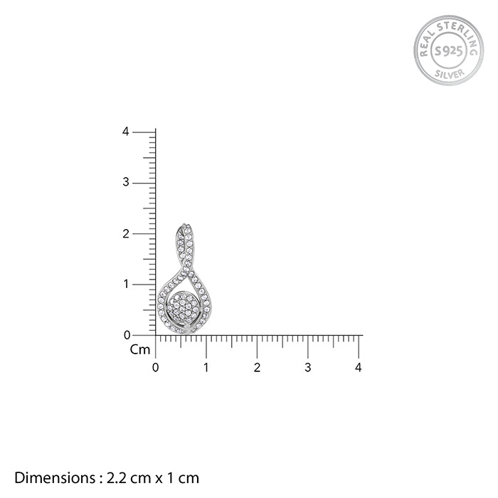 This silver pendant for women features an infinity design studded with zircons. A circle design, also studded with zircons, is placed at the centre. The pendant comes with a matching silver link chain.
