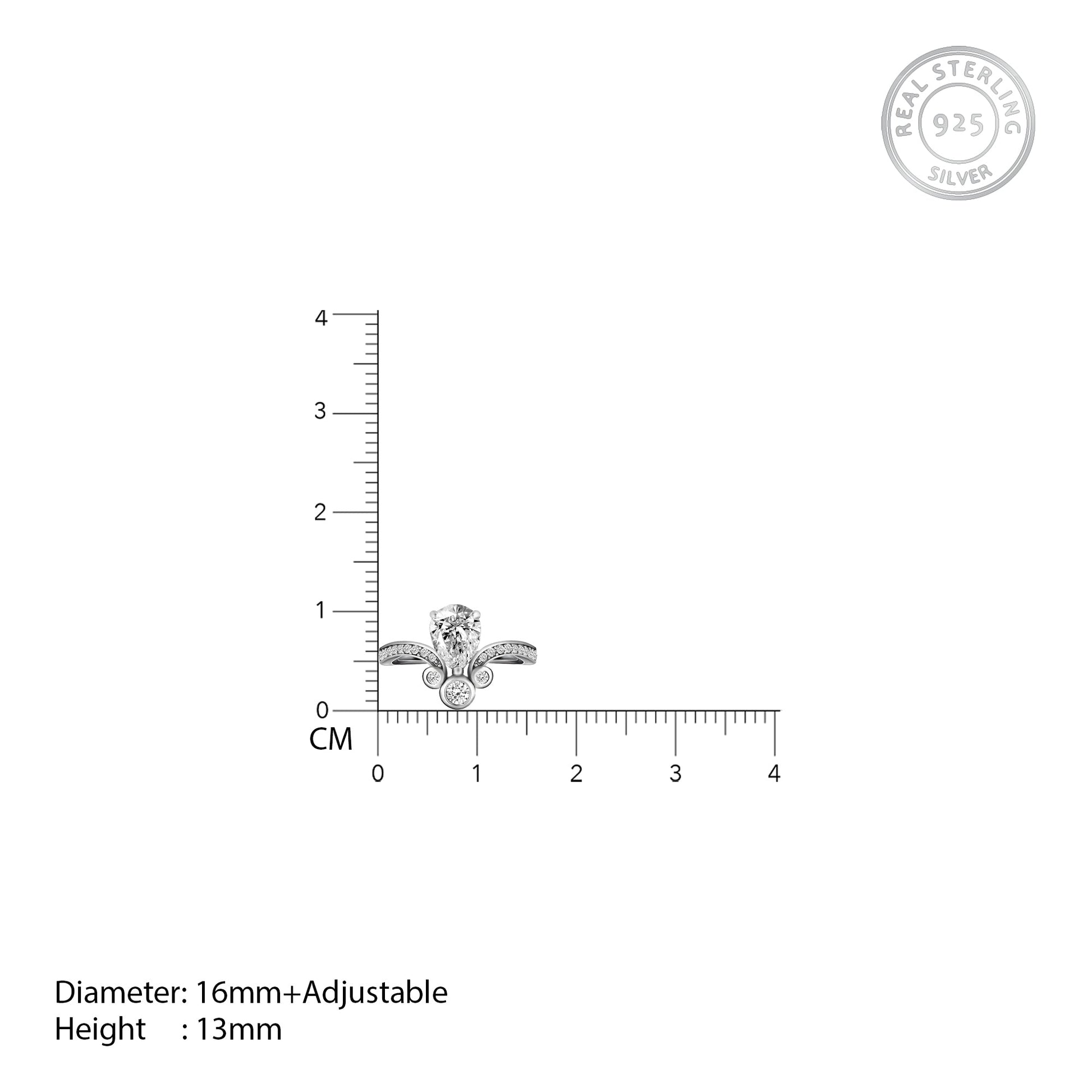 Silver Zircon Crown Drop Ring