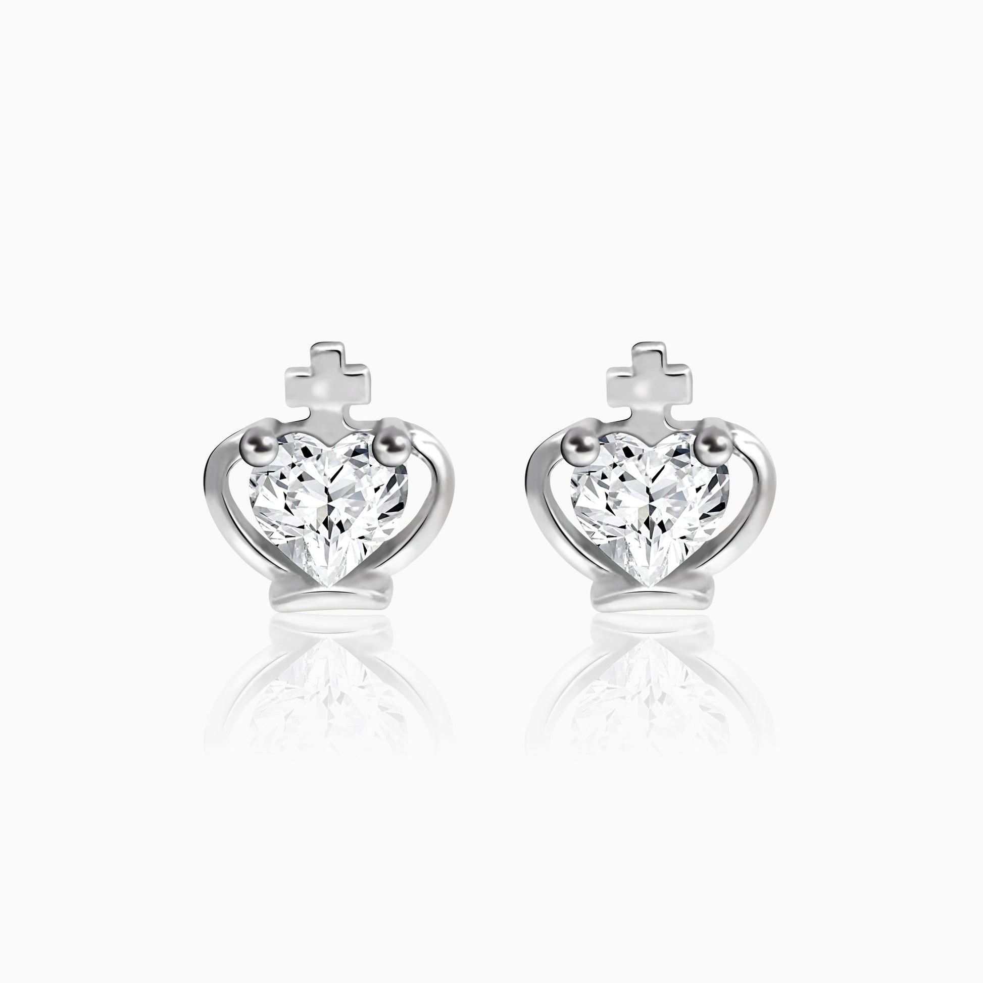 These Silver Zircon Crown Heart Earrings are handcrafted with love, just for YOU! The real charm lies in their intricate details. A beautiful crown and a gorgeous heart at the centre come together to create something unique.