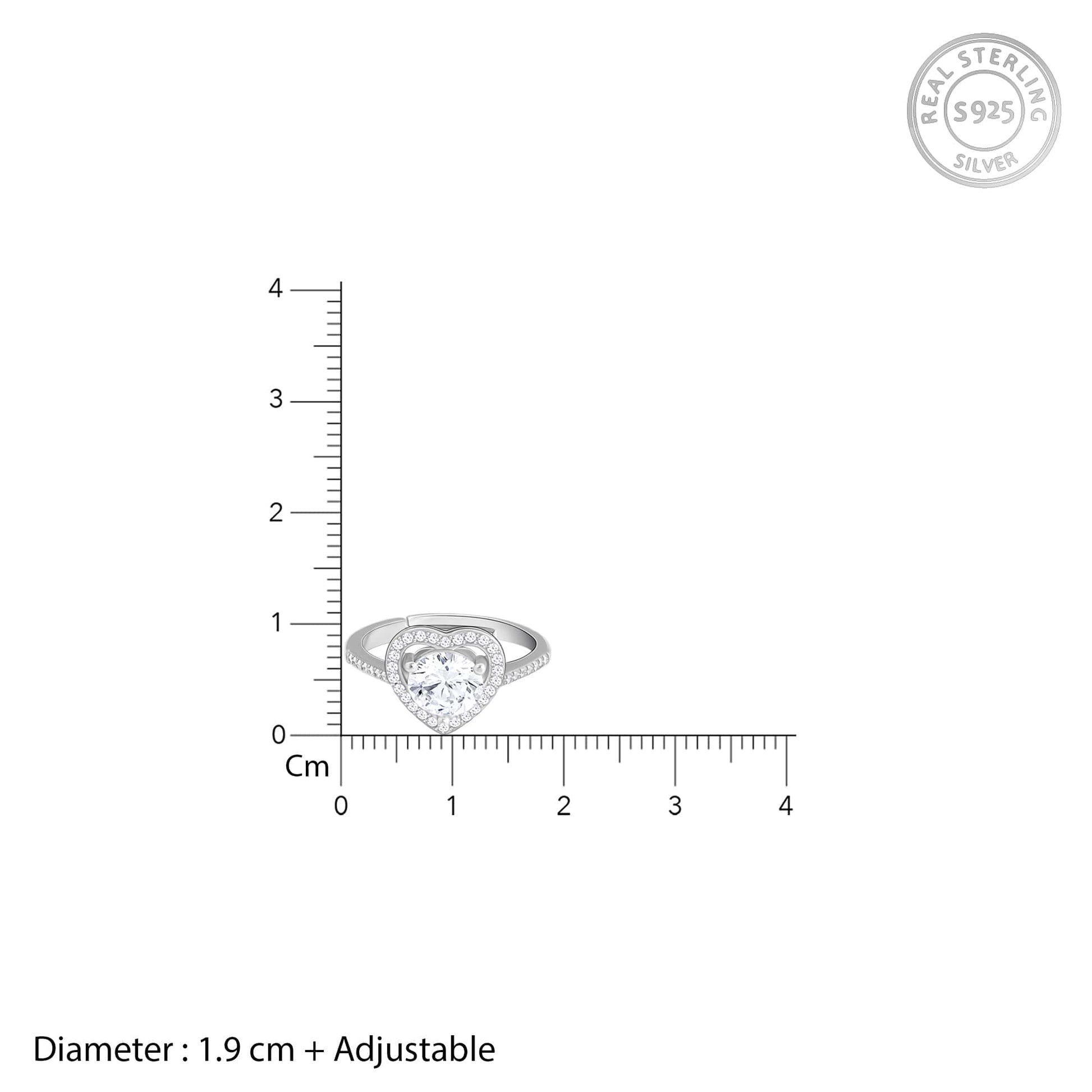 The Silver Zircon Heart's Desire Ring has the design of a beautiful heart shape, studded with zircons all across the design, and one eye-catching single piece of zircon in the centre.