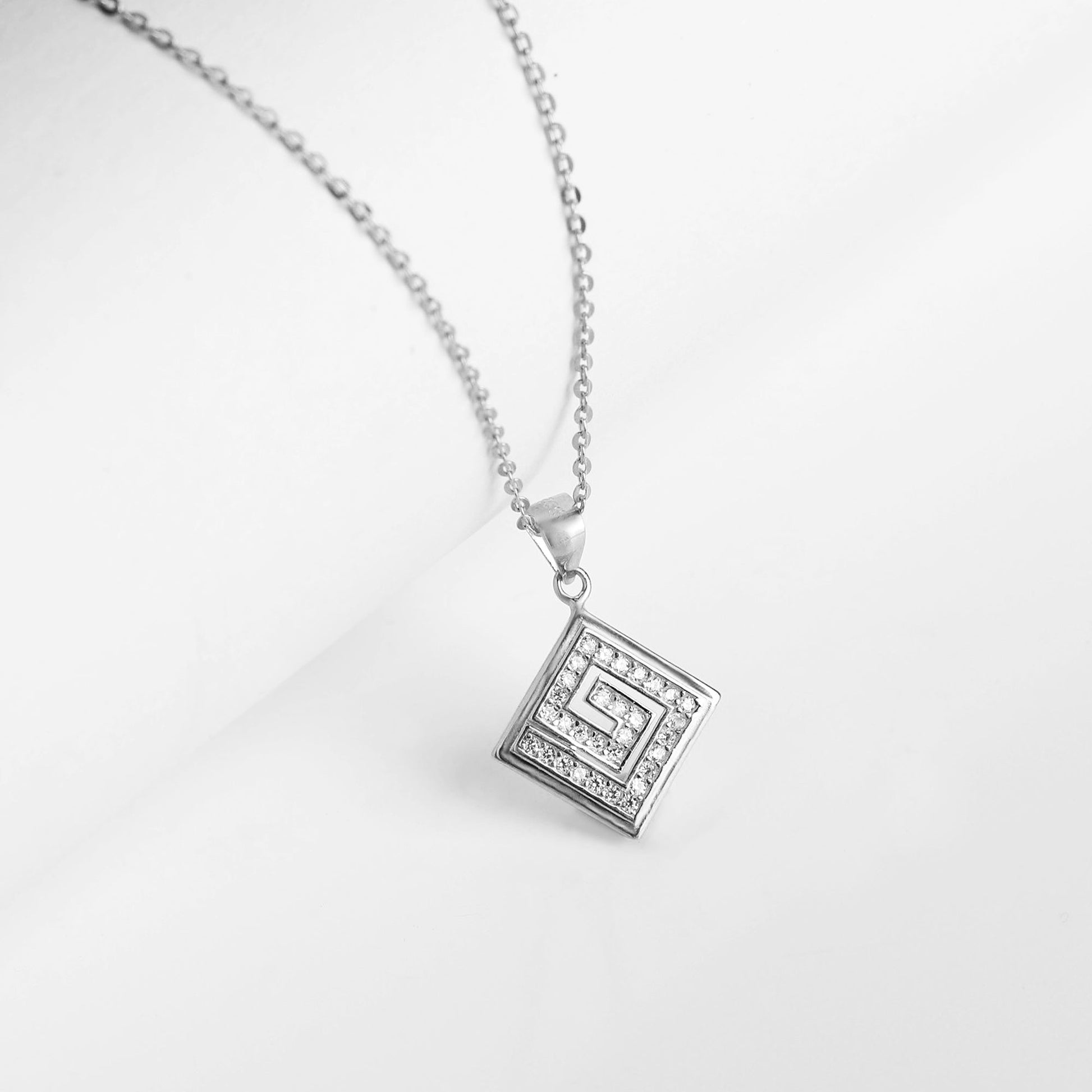 This Silver Zircon Maze Pendant is handcrafted with love, just for YOU. A silver pendant is crafted into an intricate maze, with sparkling zircons embellished along the entire surface. Truly enthralling.