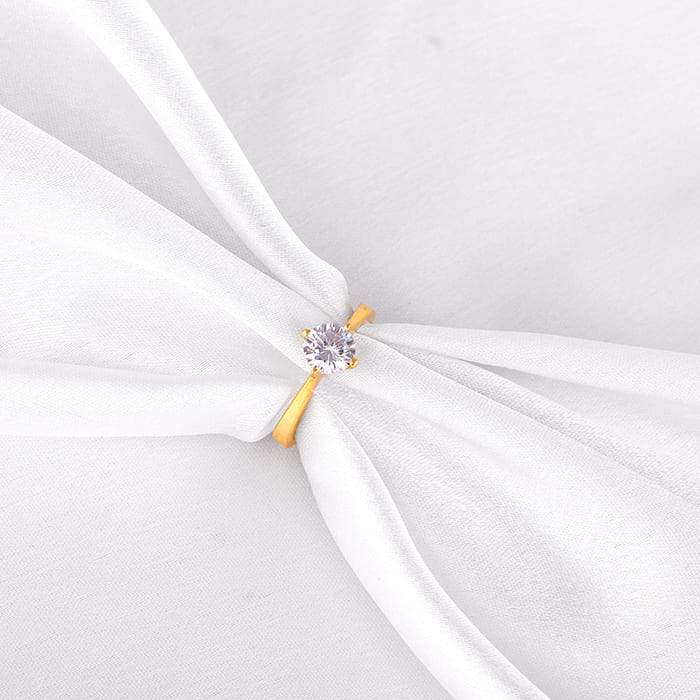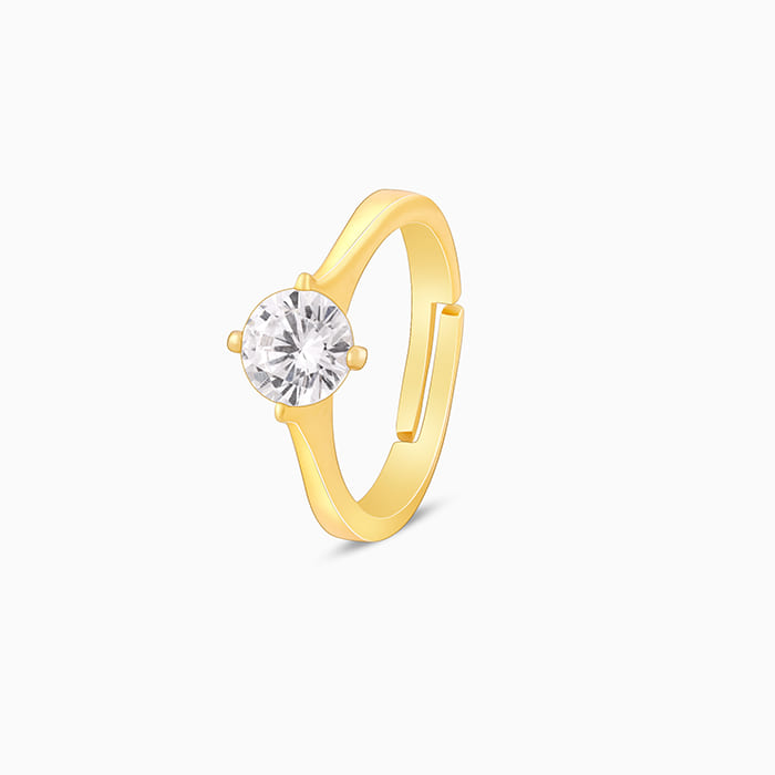 This golden ring features a singular zircon in a prong setting.