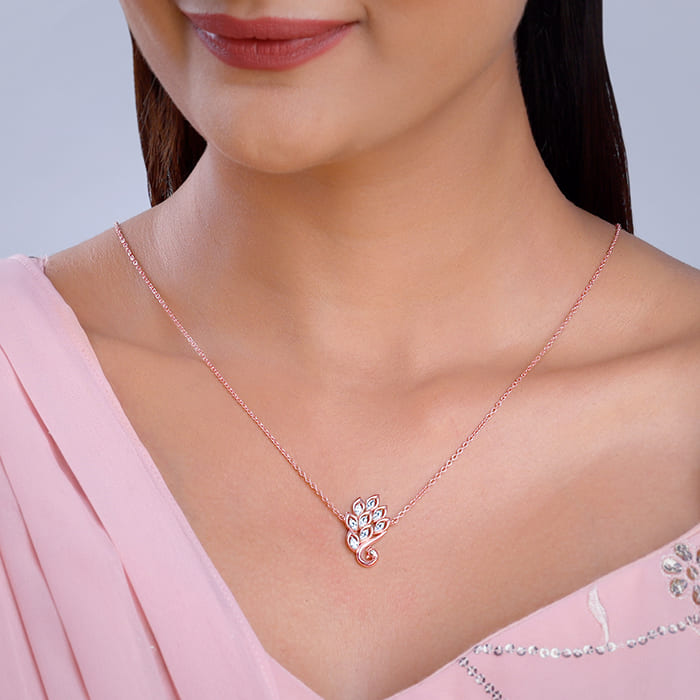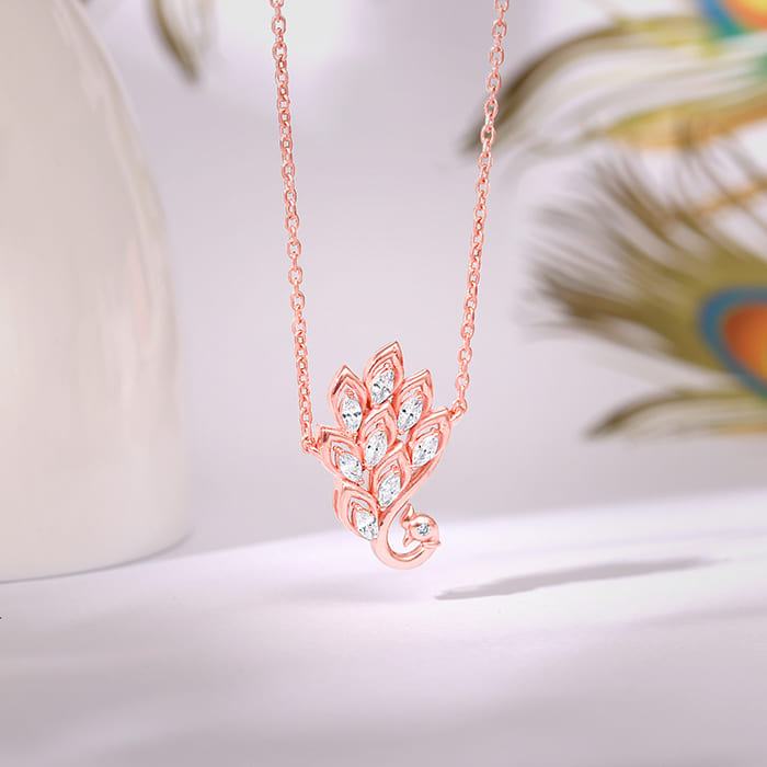 This rose gold necklace features a peacock motif studded with zircons. Celebrate the timeless beauty of Indian textiles with GIVA's latest 'Magic of Tradition' collection. Wear and celebrate tradition, anytime.